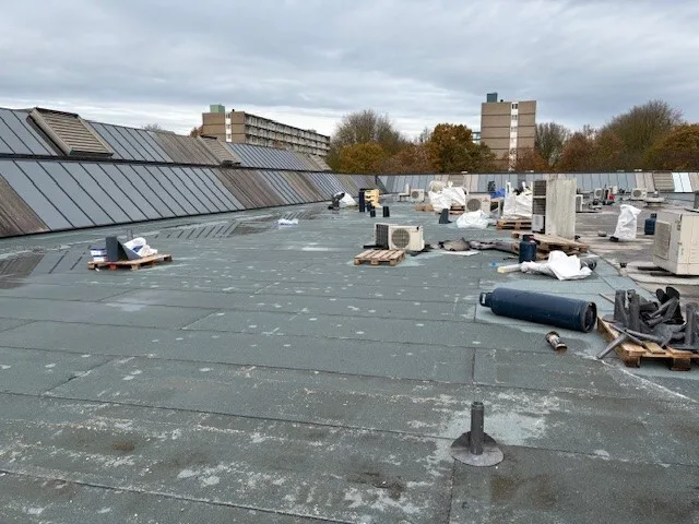 In uitvoering: dakwerkzaamheden winkelcentrum Paddepoel Groningen